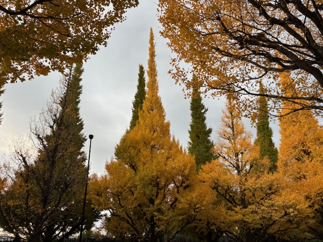 青山一丁目あたり銀杏の木が黄色に色づいていました♪