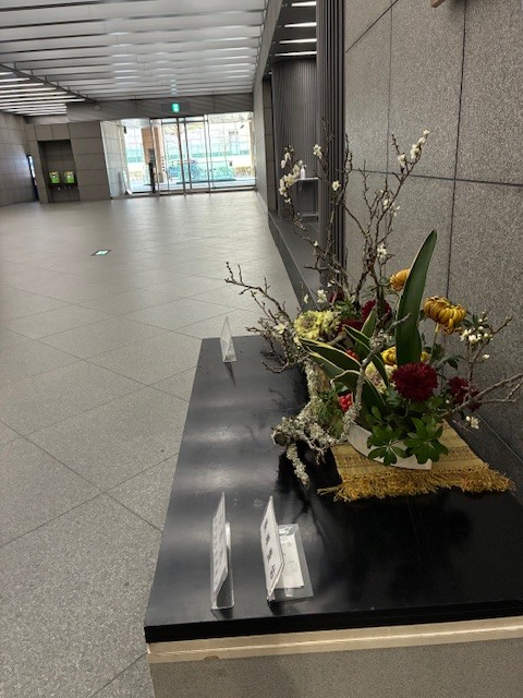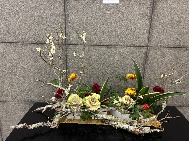 梅の苔がいっぱい付いているのを全面に置き合わせ、格調高いですね。「いけてるところを初めて見た」と通りすがりの方が、声をかけてくれました。